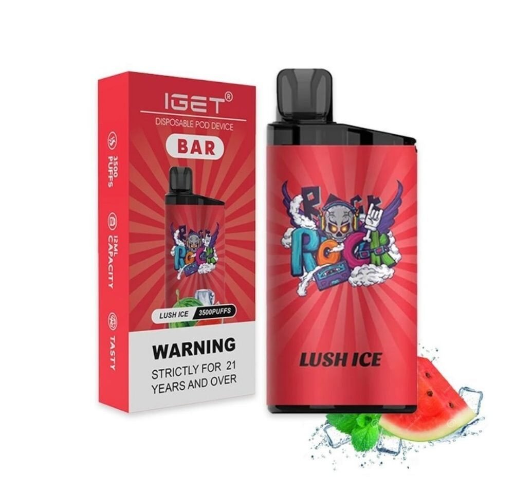 Experience the IGET Bar 3500 Puffs Lush Ice, an adult disposable vape delivering 3,500 puffs, mesh coil performance, and a sweet watermelon-menthol hit.